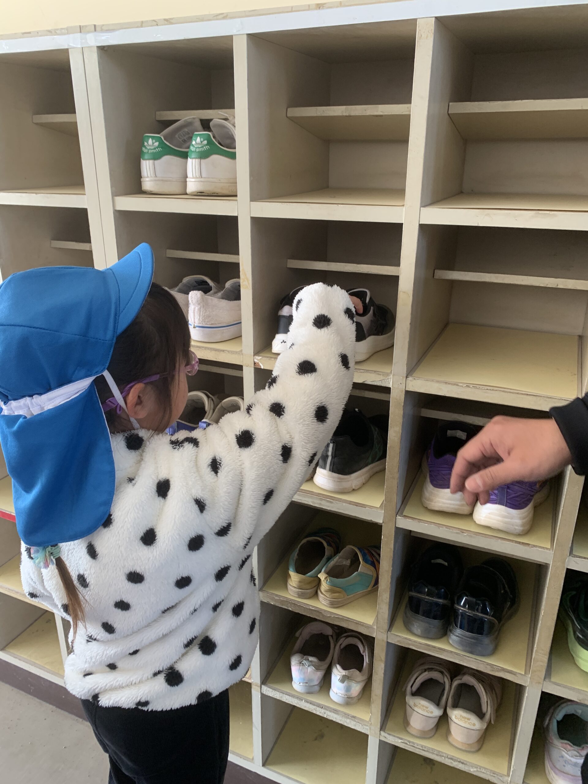 玄関に入ると、先生が待っていてくれて下駄箱の靴がきれいに見える方法を教えてもらいました☺︎