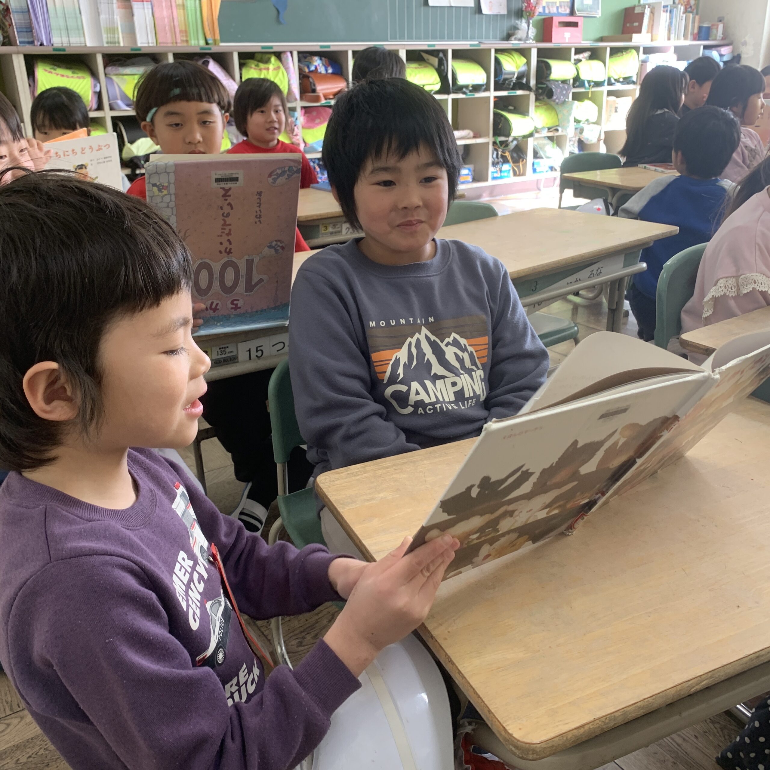 漢字ドリルに丸をつけてもらった一年生が、今度はみんなの為に、絵本の読み聞かせをしてくれました📕