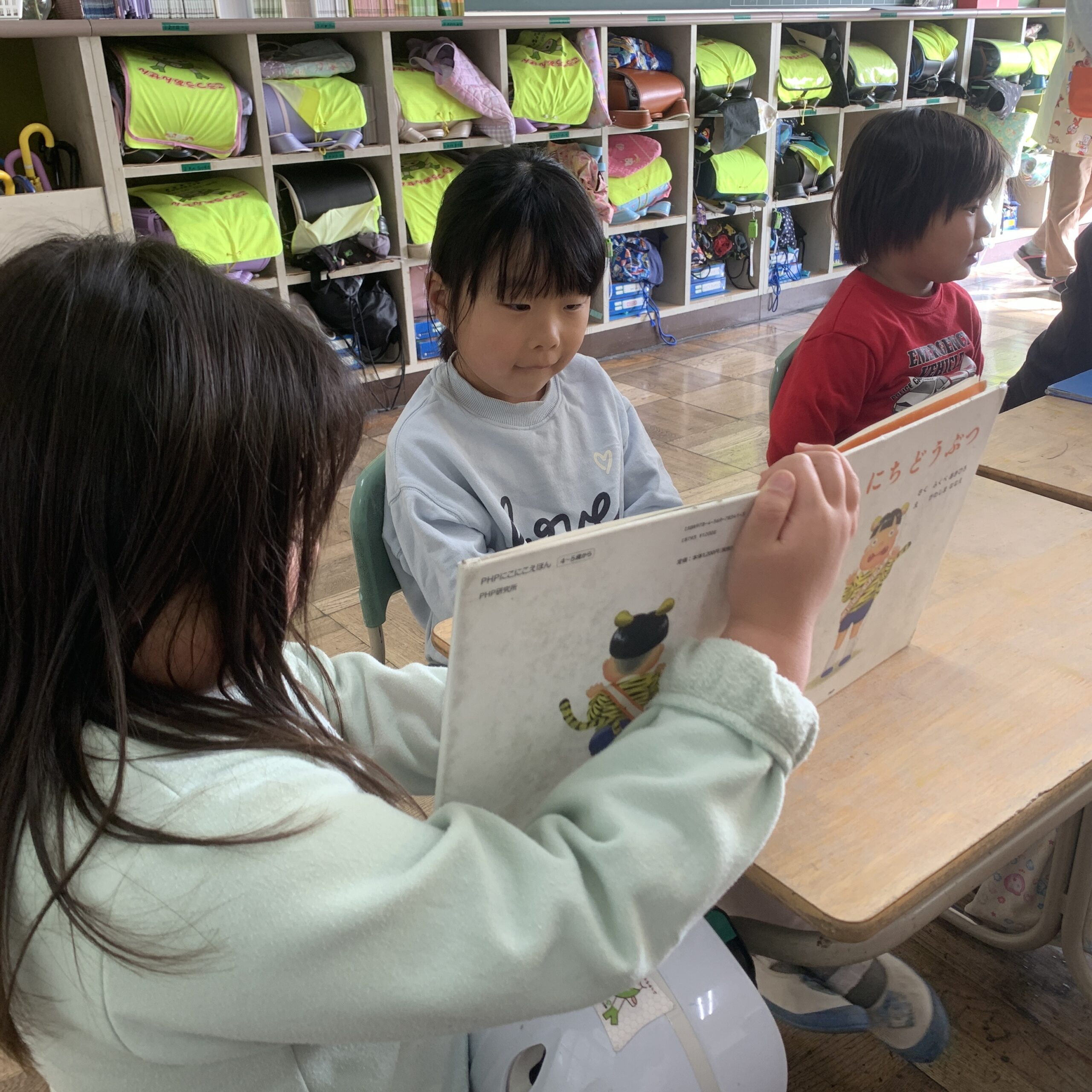 緊張していたあお組のみんなの面持ちも、一年生の読み聞かせで少しだけリラックスモードへ😌