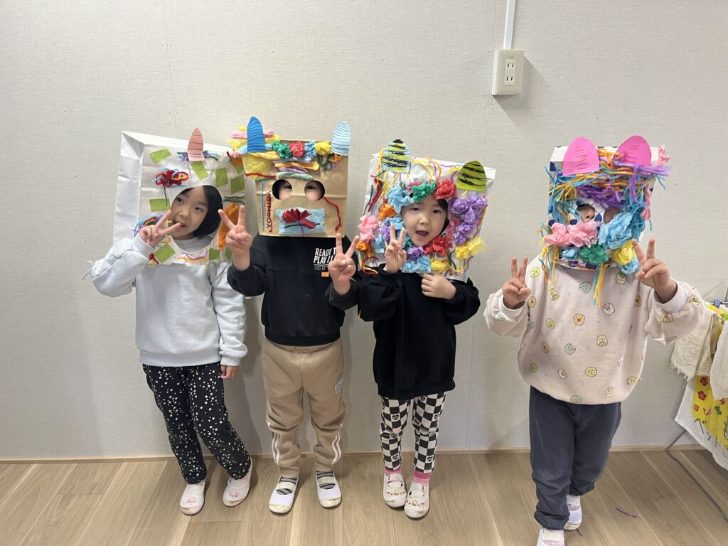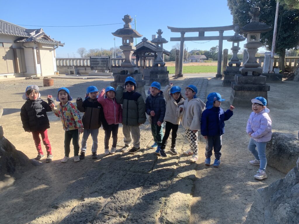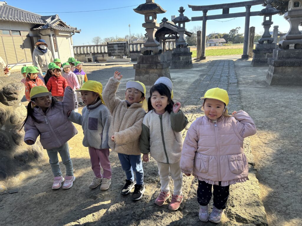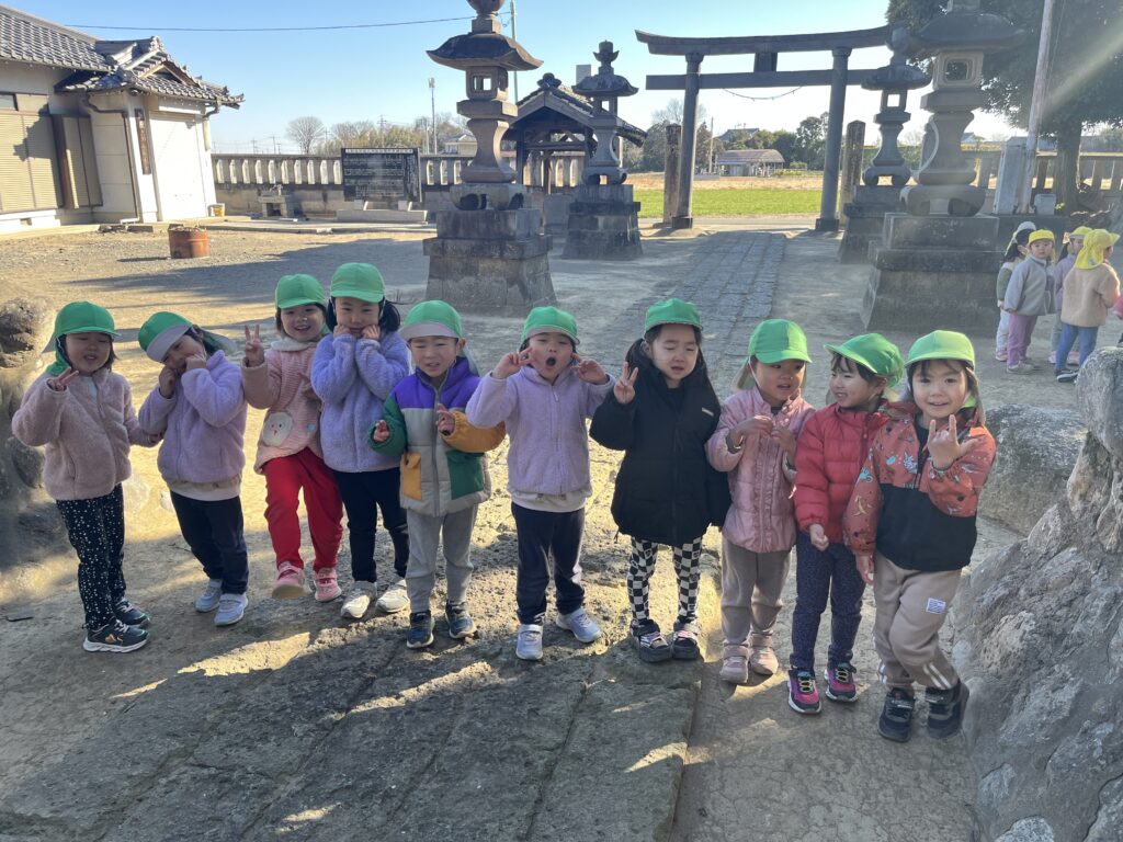かわいいお面もできました!神社でお参りも♪